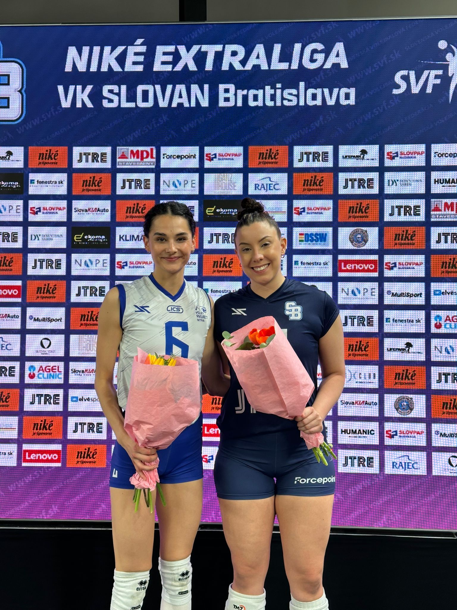 Hráčky zápasu: Laura Machado (VK Slovan Bratislava) – Sára Dlhošová (Volley project UKF Nitra)