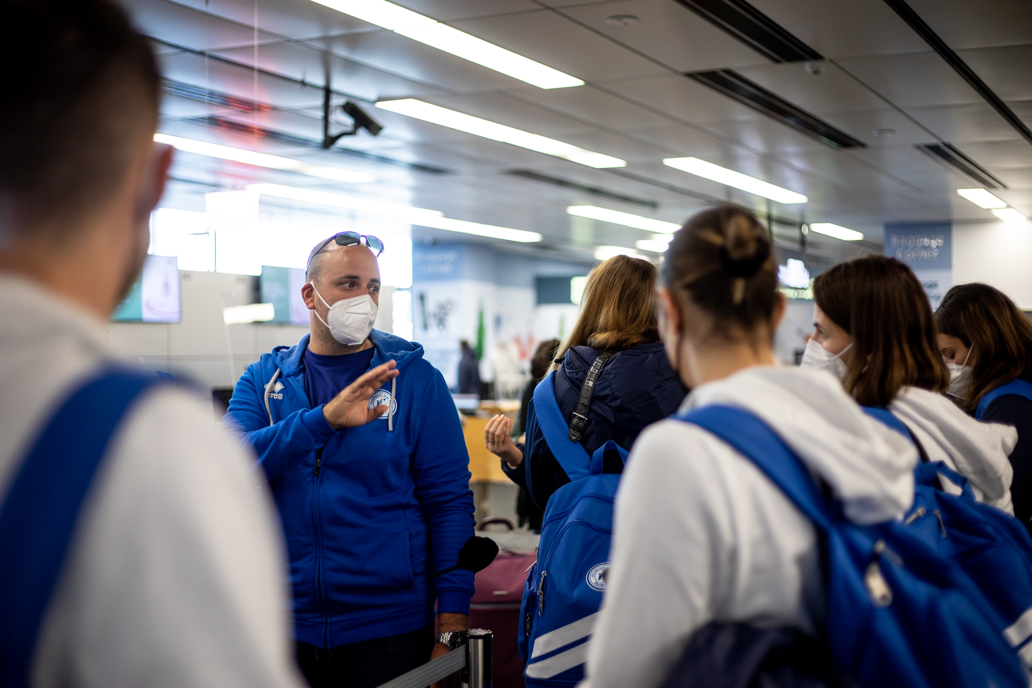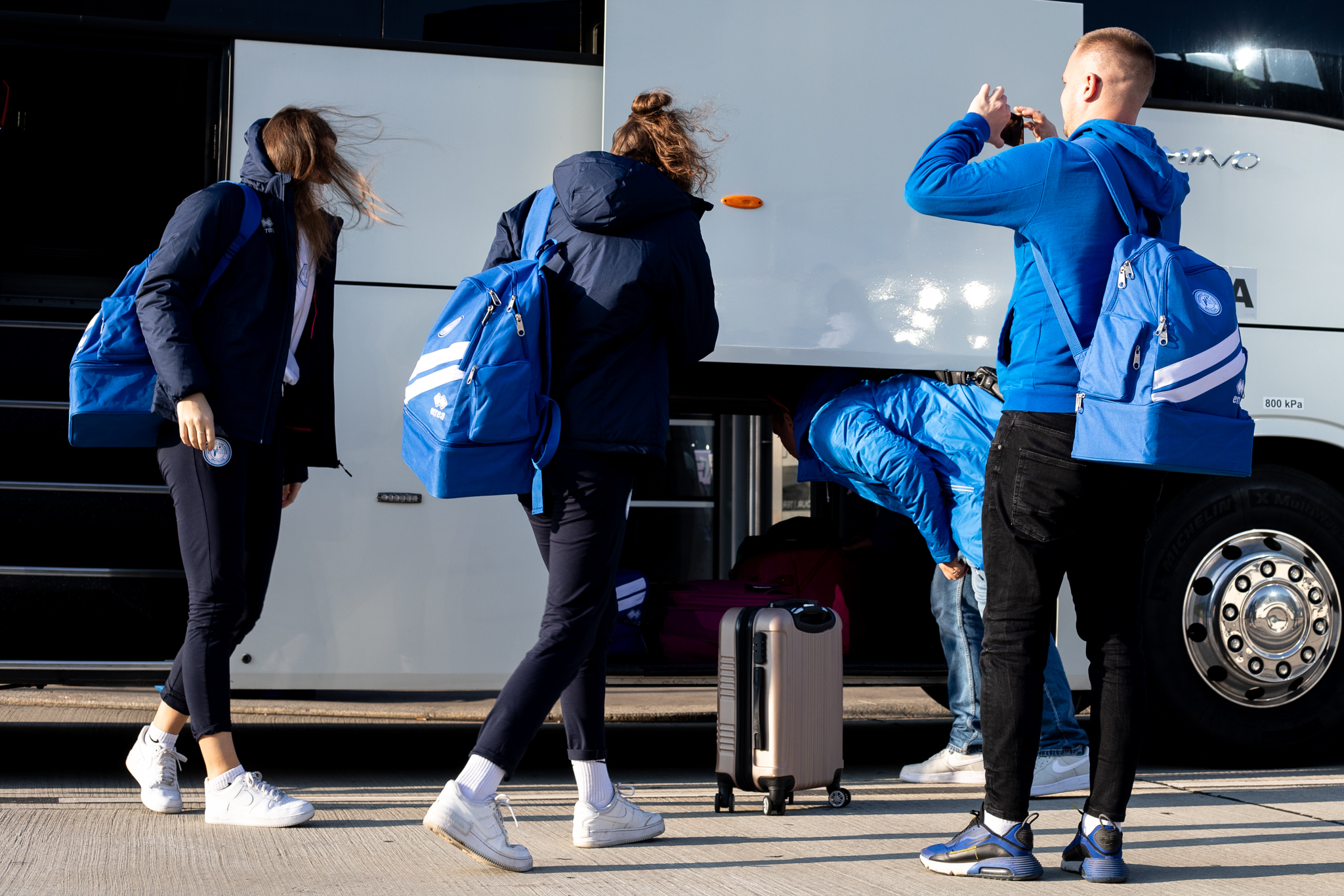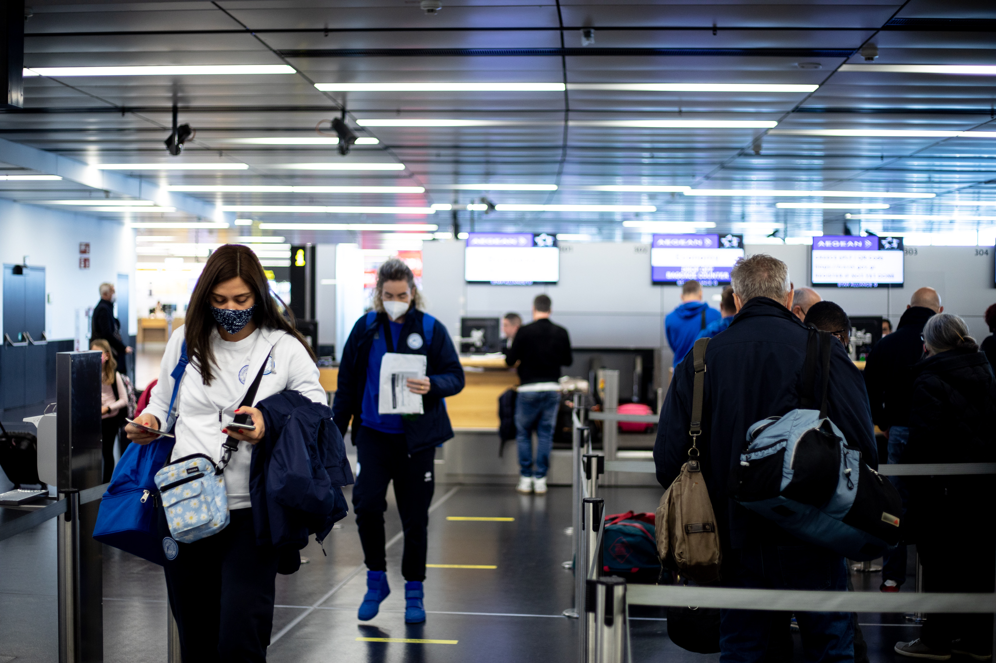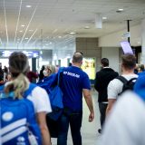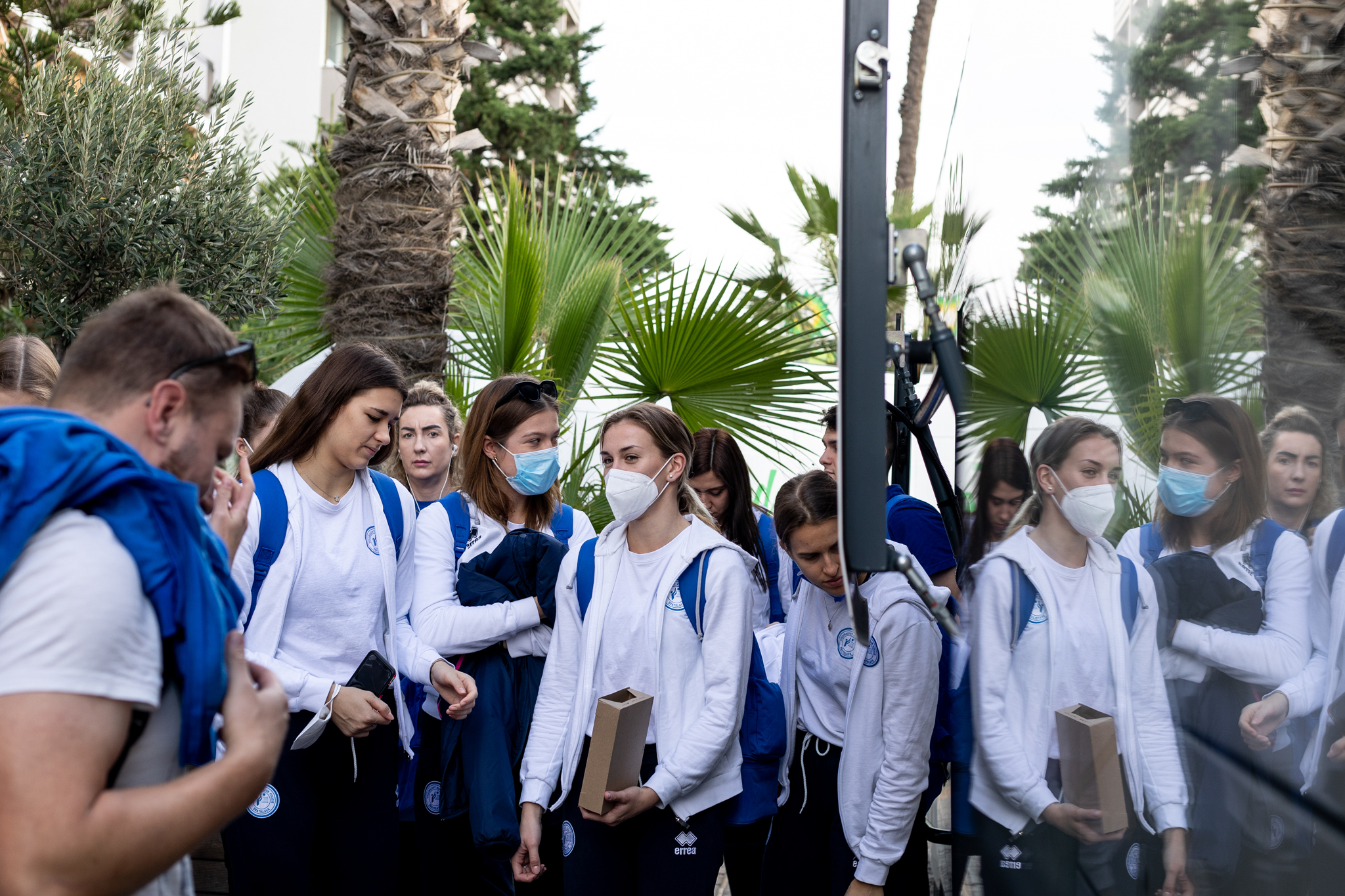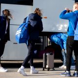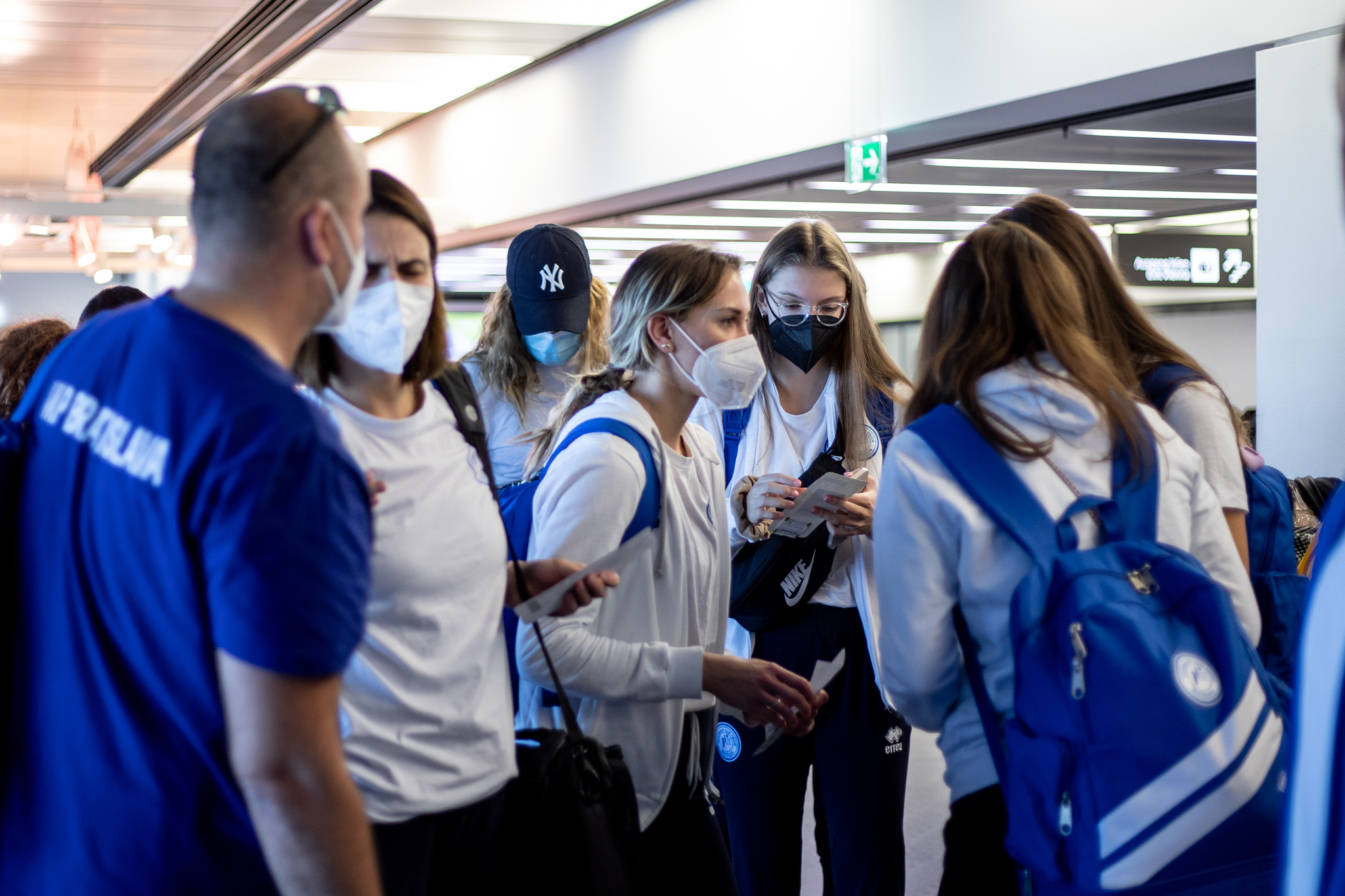 Výprava sa v pondelok ráno presunula z Bratislavy autobusom na viedenské letisko Schwechat odkiaľ sa Airbusom gréckych aerolínií presunula do Atén, kde pristáli o 14-tej hodine miestneho času. Oproti Slovensku je v Grécku o hodinu viac. „Lietanie milujem a Grécko tiež,“ vyhlásila pred odletom opora tímu Zuzana Písečná. „Navštívila som viaceré grécke ostrovy. Každý z nich je niečím špecifický. Zbožňujem architektúru bielo-modrých domčekov a more, ktoré je vždy krásne. Kombinácia toho je fakt úžasná,“ dodala. „Policajtky“ privítalo pod Akropolou krajšie počasie ako u nás, ručička teplomera ukazovala 19 stupňov Celzia, ale bolo pod mrakom. Na parkovisku letiska nás už čakal klubový autobus nášho súpera, ktorý odviezol výpravu do štvorhviezdičkového hotela Coral, ktorý sa nachádza priamo pri mori v aténskej štvrti Paleo Faliro.