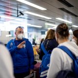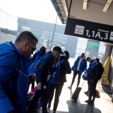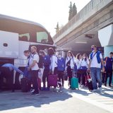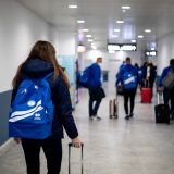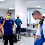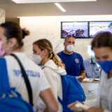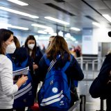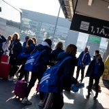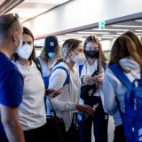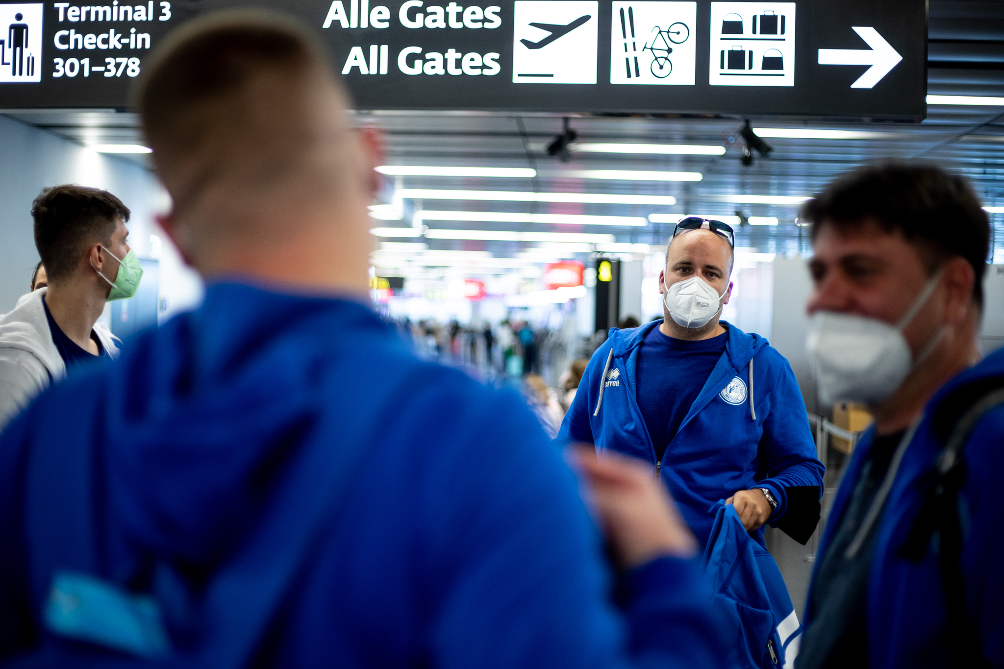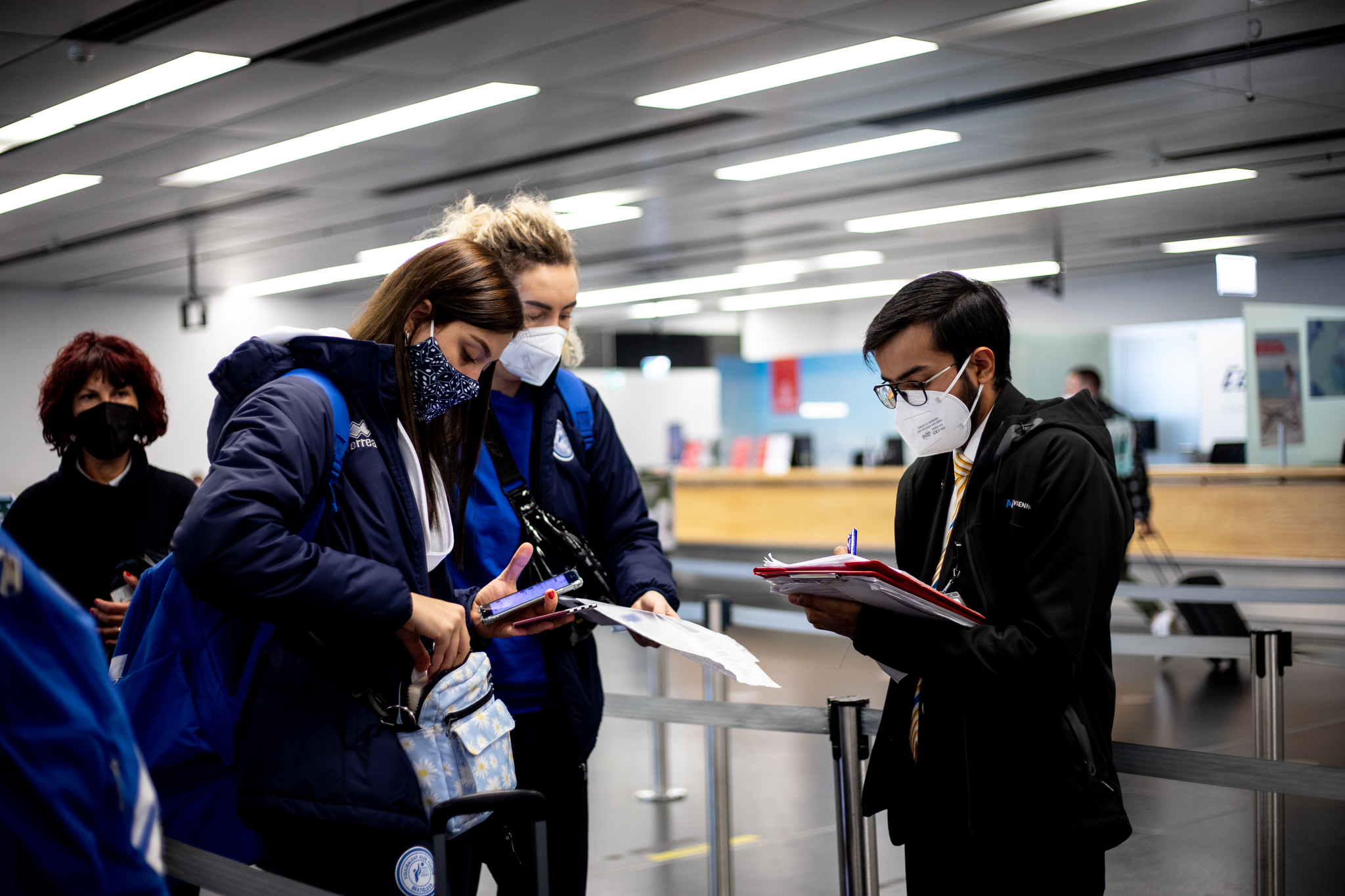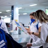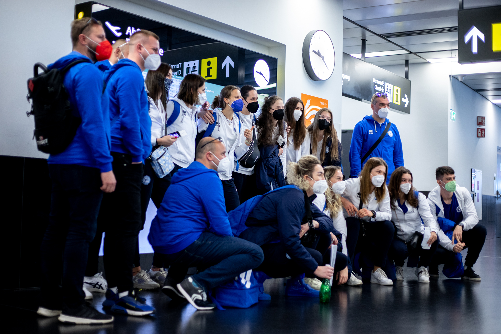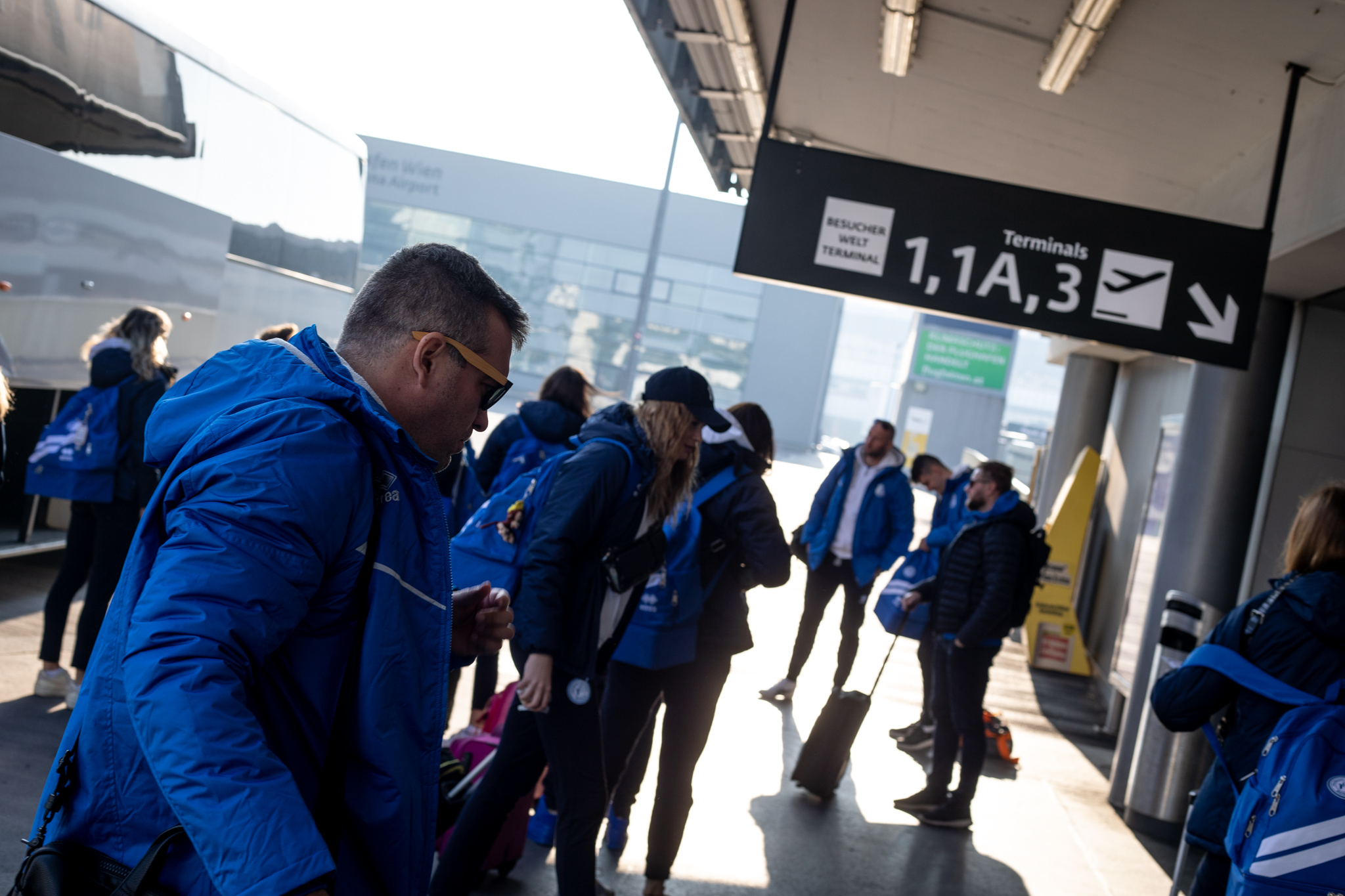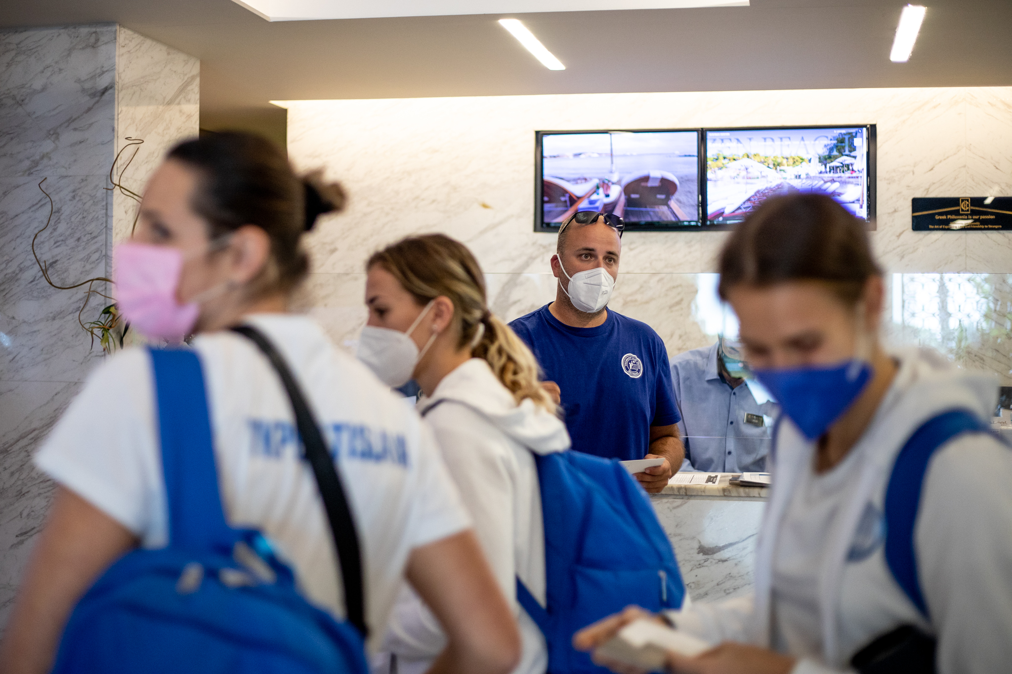 Výprava sa v pondelok ráno presunula z Bratislavy autobusom na viedenské letisko Schwechat odkiaľ sa Airbusom gréckych aerolínií presunula do Atén, kde pristáli o 14-tej hodine miestneho času. Oproti Slovensku je v Grécku o hodinu viac. „Lietanie milujem a Grécko tiež,“ vyhlásila pred odletom opora tímu Zuzana Písečná. „Navštívila som viaceré grécke ostrovy. Každý z nich je niečím špecifický. Zbožňujem architektúru bielo-modrých domčekov a more, ktoré je vždy krásne. Kombinácia toho je fakt úžasná,“ dodala. „Policajtky“ privítalo pod Akropolou krajšie počasie ako u nás, ručička teplomera ukazovala 19 stupňov Celzia, ale bolo pod mrakom. Na parkovisku letiska nás už čakal klubový autobus nášho súpera, ktorý odviezol výpravu do štvorhviezdičkového hotela Coral, ktorý sa nachádza priamo pri mori v aténskej štvrti Paleo Faliro.